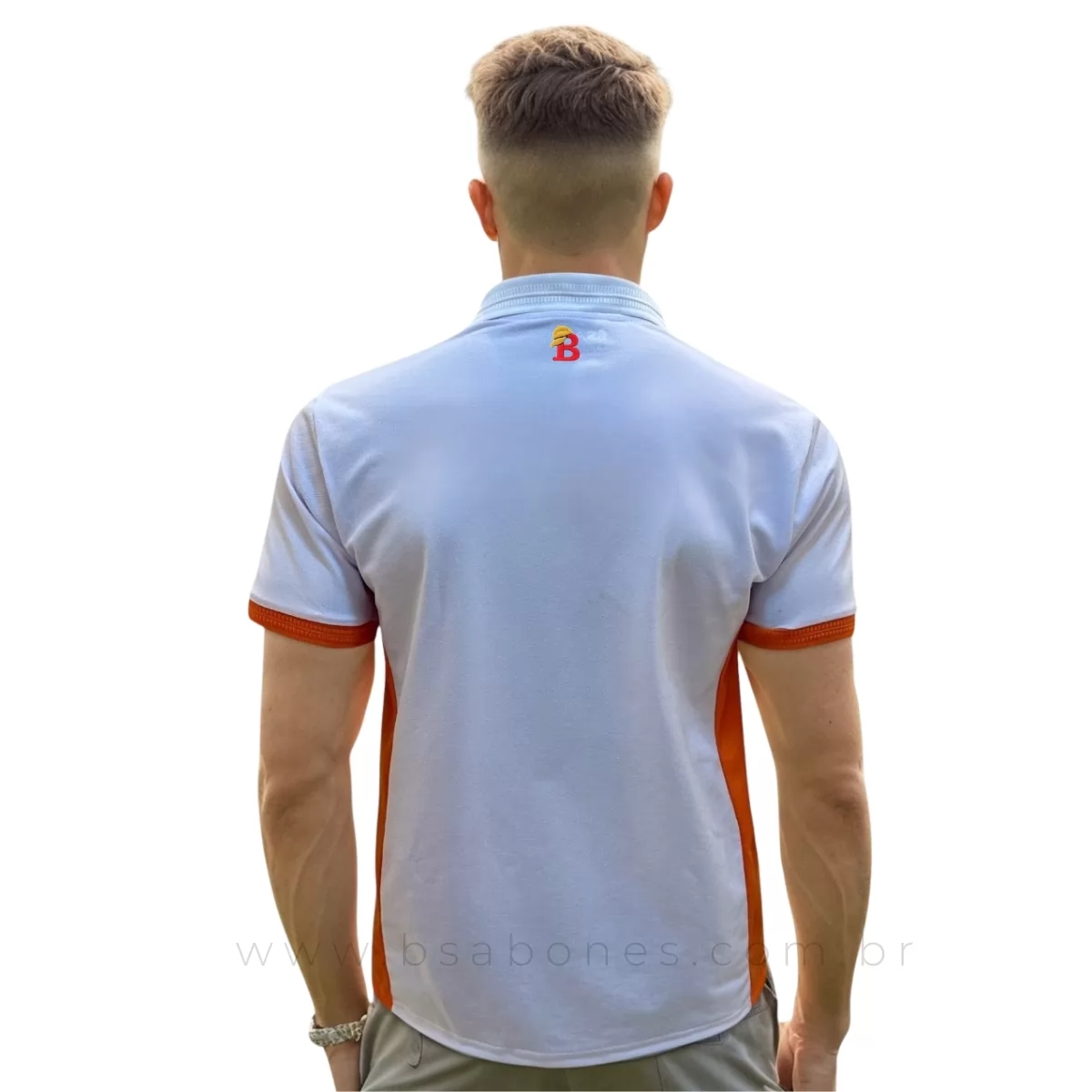 Camisa gola polo, modelo Recorte feita em malha piquet PA com tratamento antipilling.